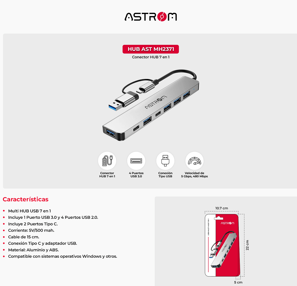 Multi – HUB USB 7 en 1.