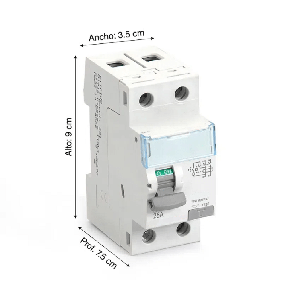 Dispositivo electromagnético que se coloca en las instalaciones eléctricas de corriente alterna con fin de proteger a las personas de accidentes provocados por el contacto con partes activas de la instalación (contacto directo)