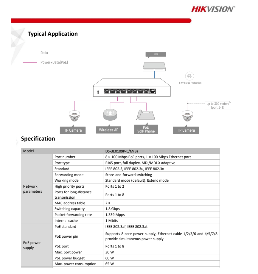 8 x 10/100 Mbps PoE port,1 × 10/100 Mbps RJ45 port